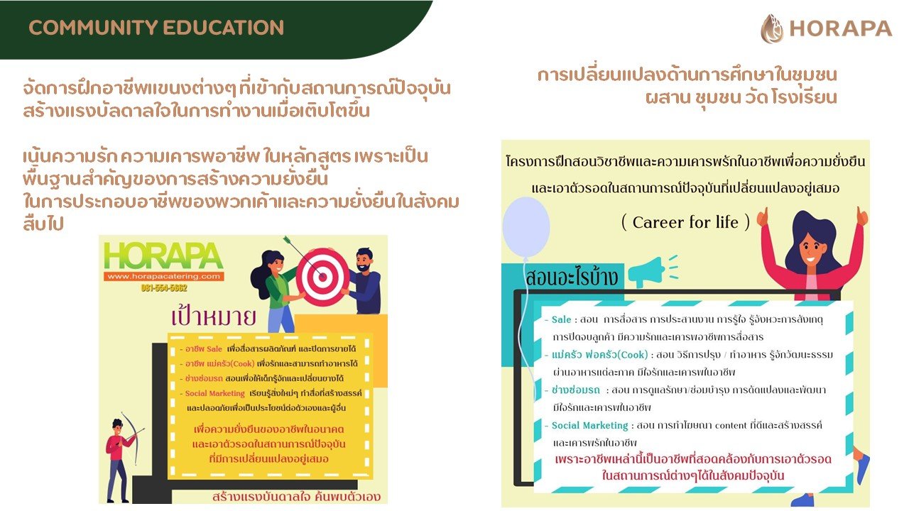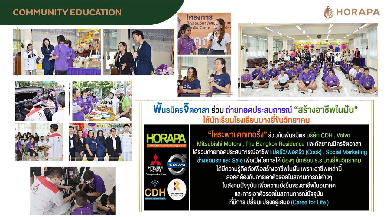 โหระพาแคทเทอริ่งร่วมกับคุณลูกค้าเริ่มขับเคลื่อนโอกาสทางด้านการศึกษาที่เปิดกว้าง ให้กับน้องๆ โรงเรียนบางยี่ขันวิทยาคม เขตบางยี่ขัน เข้าสู่ปีที่2 ที่เราตั้งใจทำความยั่งยืนตลอดชีวิต ผ่านการพัฒนาอย่างยั่งยืน กับโครงการฝึกอาชีพและความเคารพรักในอาชีพ Career for Life เรียนรู้ลงมือทำจริง จากผู้รู้จริง มีประสบการณ์จริง โหระพาแคทเทอริ่งและบริษัทพันธมิตรได้ร่วมกันสร้างหลักสูตรการเรียนรู้ ที่มีความชำนาญในด้านต่างๆที่แตกต่างกันออกไป ของ 6 บริษัท