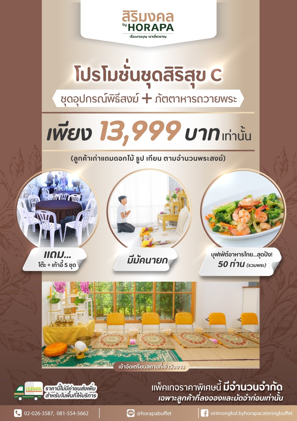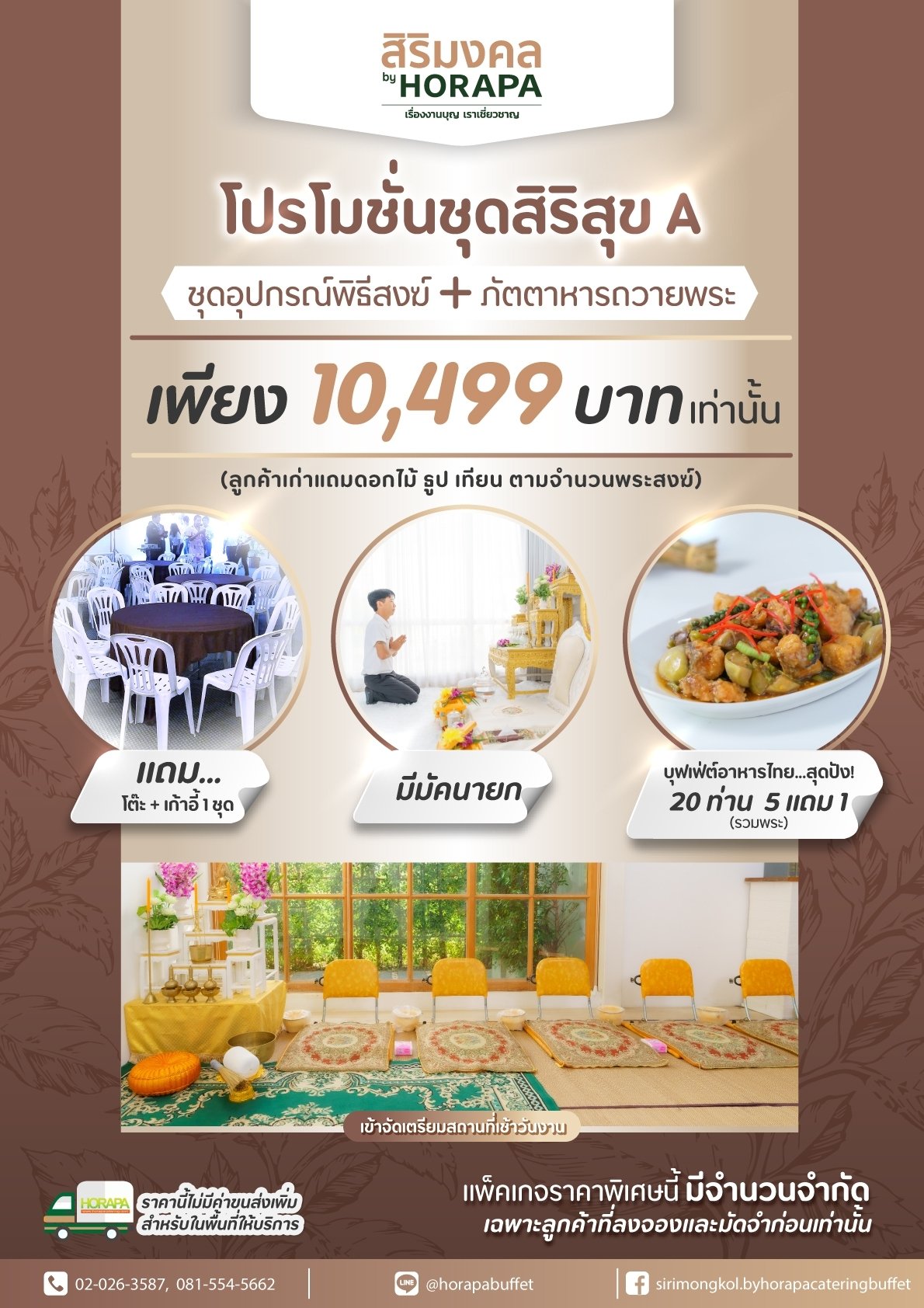 จัดพิธีสงฆ์พร้อมอาหารครบวงจร สำหรับแขก 20 ท่าน ราคา 10,499 บาท