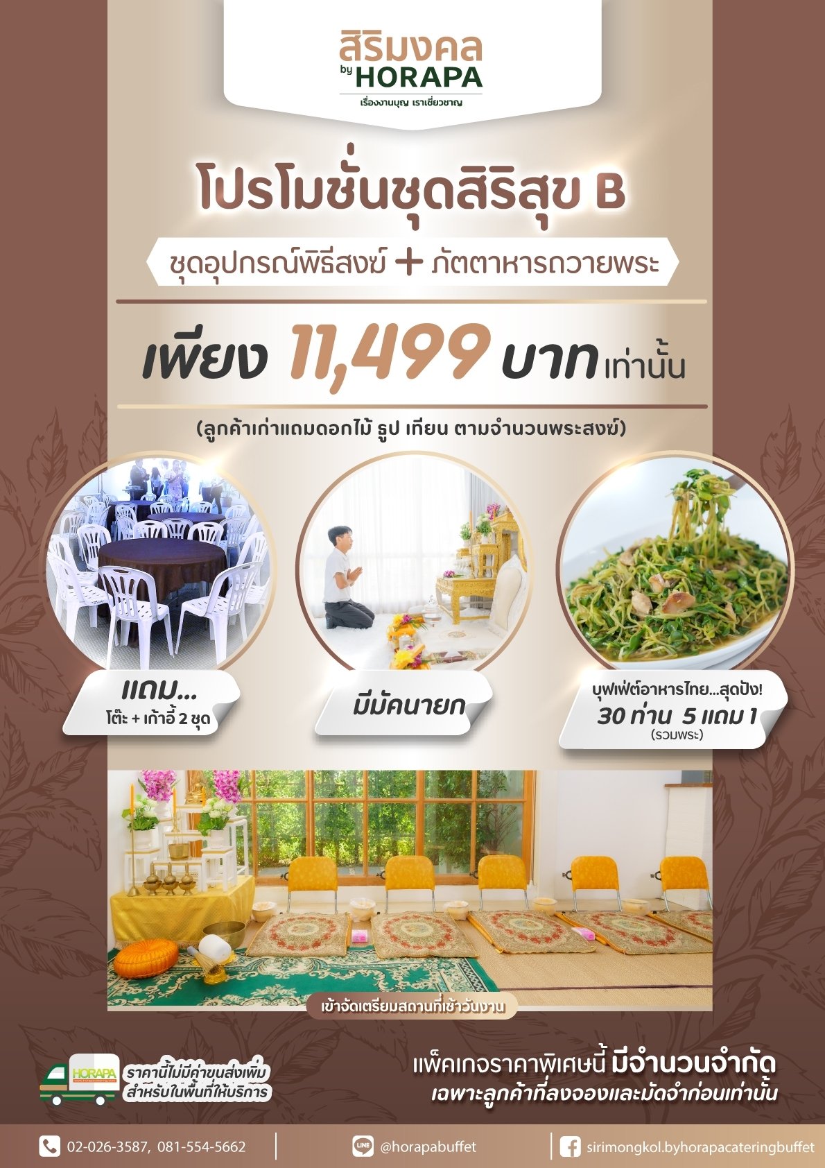 จัดพิธีสงฆ์พร้อมอาหารครบวงจร สำหรับแขก 30 ท่าน ราคา 11,499 บาท