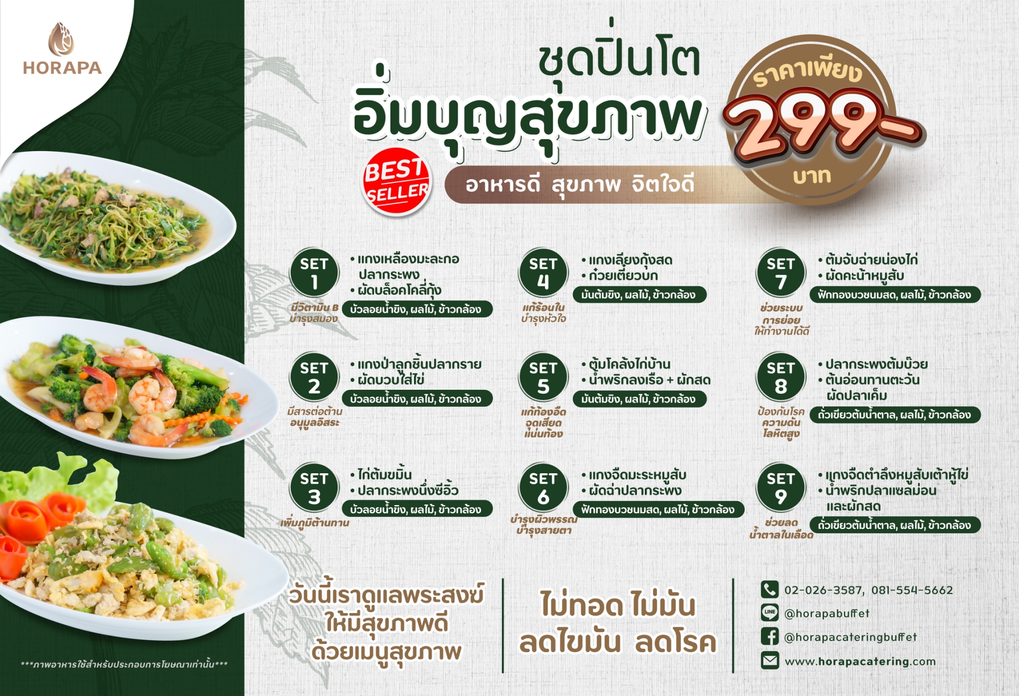 อิ่มบุญสุขภาพ 299 บาท. ดีต่อสุขภาพพระสงฆ์ด้วยเมนูอาหารที่คัดสรรมาอย่างดี ลดไขมัน ลดโรค